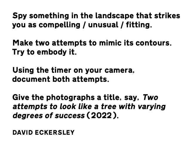 Mimic the landscape and take on the form of physical forms in what you see. Share the photos and creations.